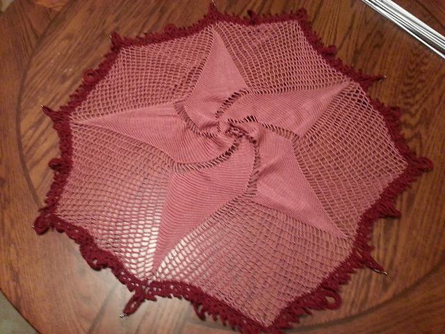 My first attempt in Knitpicks Curio cotton was gorgeous, solid in the center, twirly on the edges. What more could I want, right?